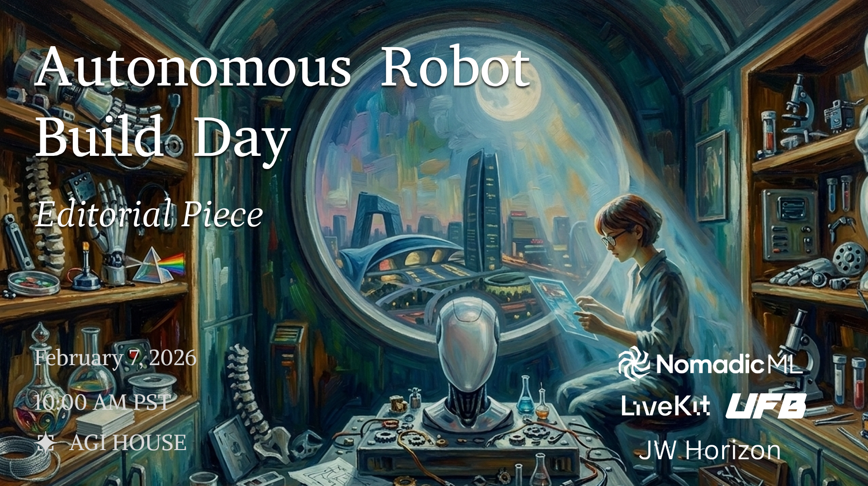 Thanks to our panelists Tony Zhao, Jason Ma, Varun Ganapathi, and Ariyan Kabir, and to David Zhao from LiveKit for their contributions. Special thanks to Nomadic ML for sponsoring the hackathon and making their platform available to builders. This analysis reflects perspectives shared at the AGI House Autonomous Robot Build Day, February 7, 2026, supplemented by market research as of March 2026.